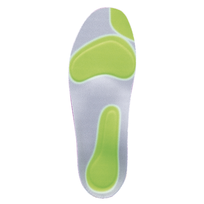 - зоны из более мягкого пенополиуретана разгружают области плюснефаланговых суставов, пятку, плантарную фасцию и первый палец стопы