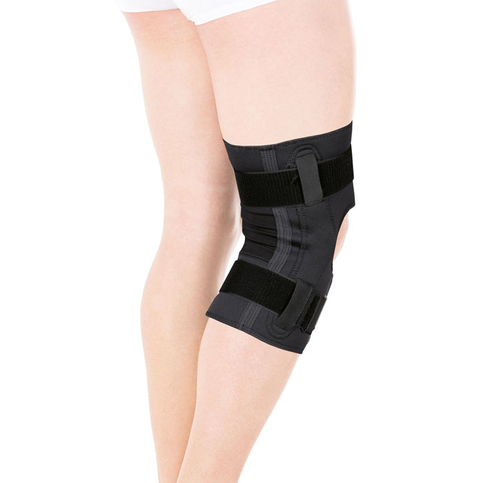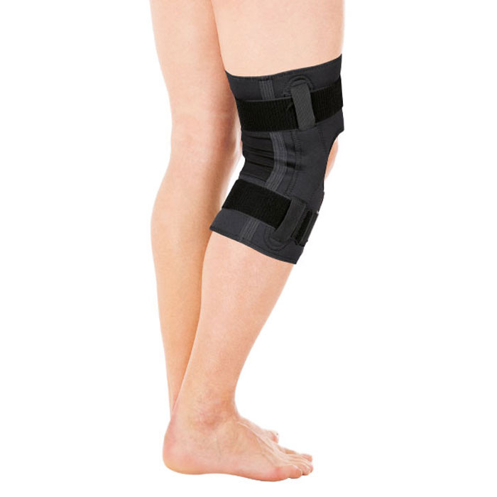 - снабжен двумя металлическими шарнирами, обеспечивающими правильную биомеханику коленного сустава
