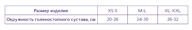 Для подбора размера следует измерить окружность голеностопного сустава в самой узкой части голени над косточкой.