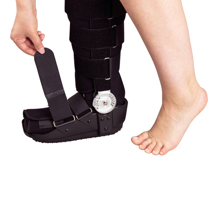 - регулировка угла подошвенного и тыльного сгибания стопы 0°- 45°, с шагом в 15°, при необходимости можно полностью иммобилизировать голеностопный сустав