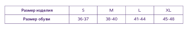 Для подбора размера следует соотнести размер обуви пользователя с таблицей размеров изделия.