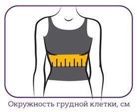 Для подбора размера следует измерить окружность грудной клетки. Измерения выполняются стоя с опущенными руками и производятся в области 4-й пары ребер на передней части тела и по нижним границам лопаток – сзади. У женщин измерительная лента прикладывается под грудью.