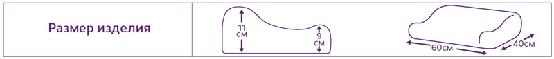 • габариты подушки: 60×40×11/9 см