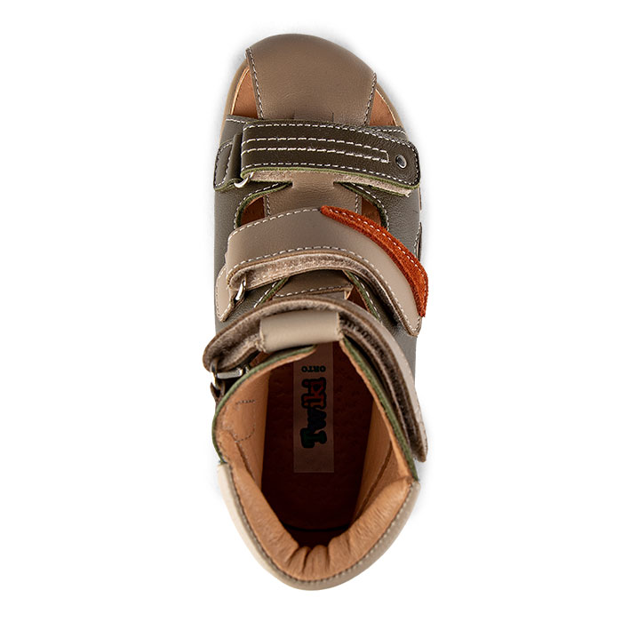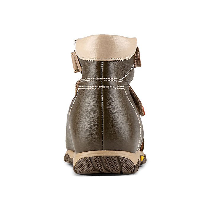 • Высокий, фигурный, жесткий задник с продленным внутренним крылом – удерживает пятку в правильном положении, стабилизирует голеностопный сустав во время ходьбы, предотвращает развитие ортопедических патологий у детей